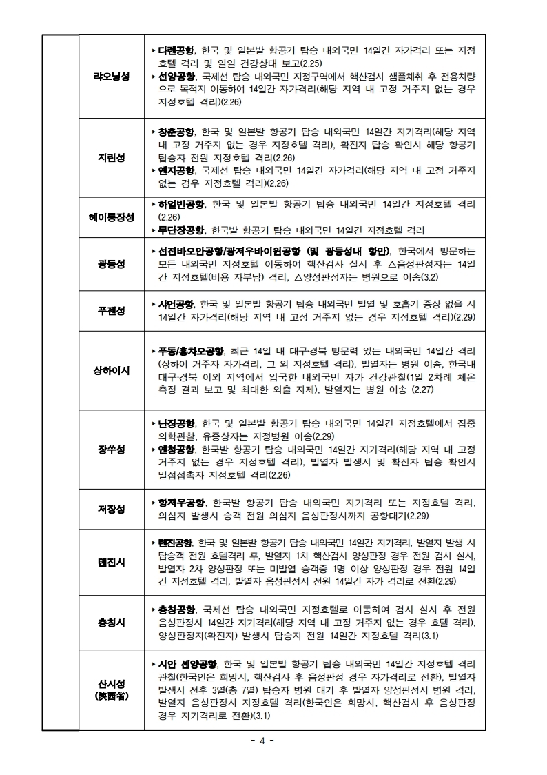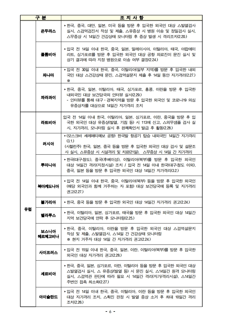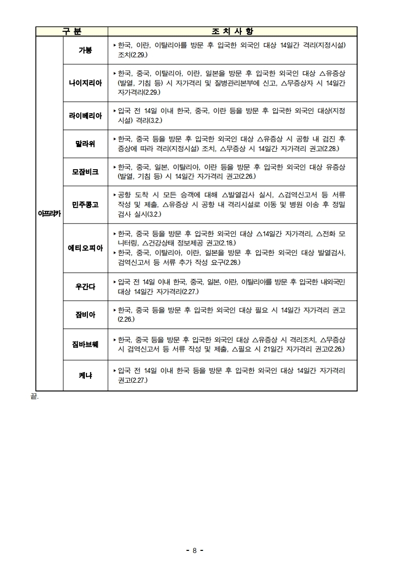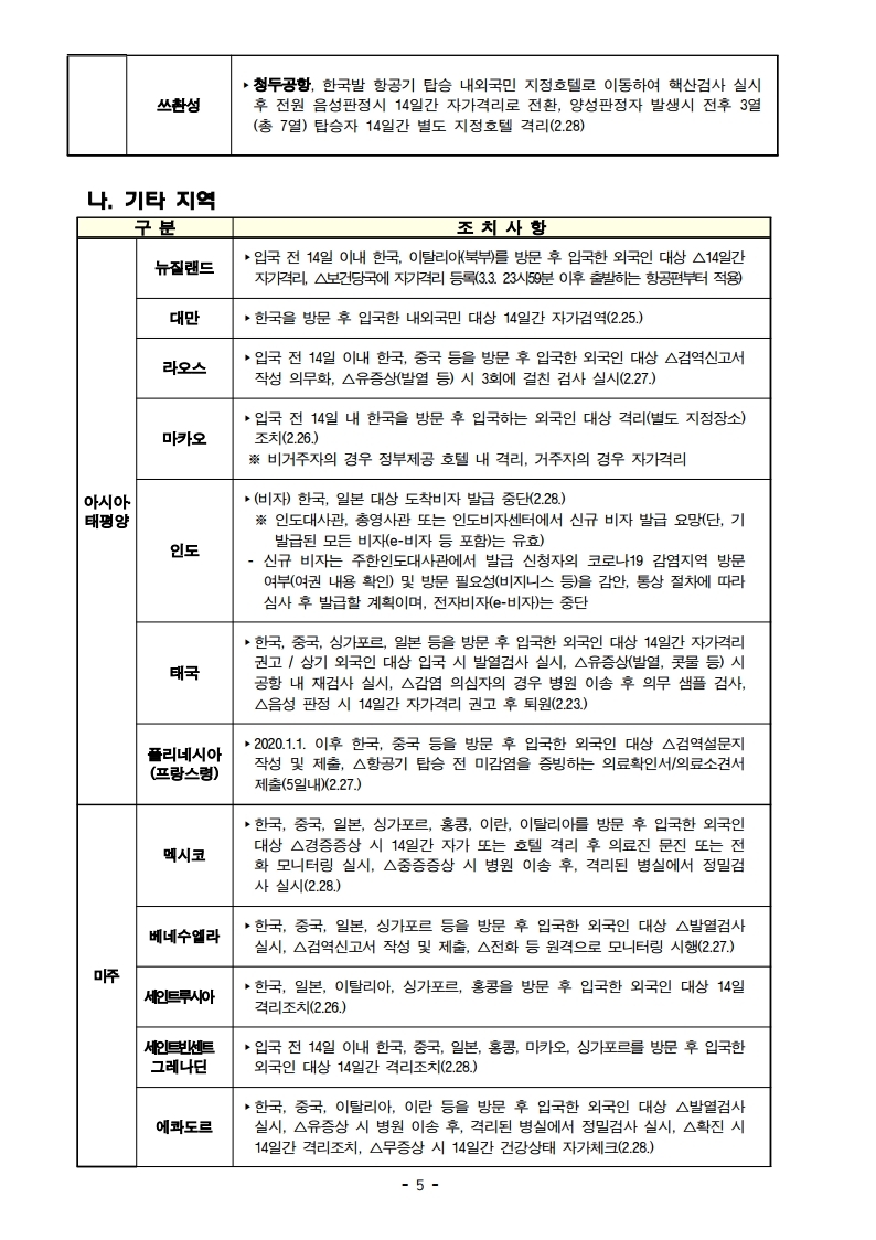 (3/3 기준) 신종 코로나바이러스 관련 출입국 제한사항