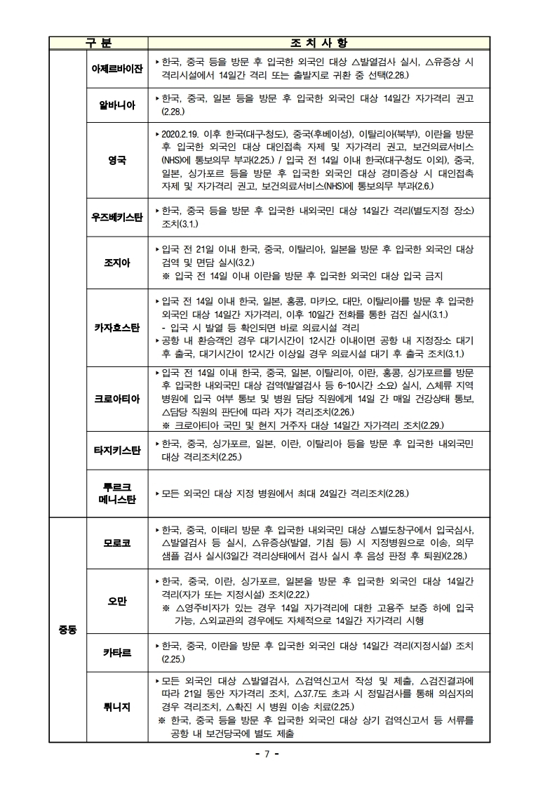 (3/3 기준) 신종 코로나바이러스 관련 출입국 제한사항